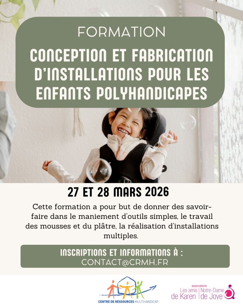 Pensée pour tous les professionnels du médico-social accompagnant des enfants polyhandicapés, cette formation vous permettra de développer votre créativité, votre autonomie et votre capacité à concevoir des supports favorisant le confort, l’exploration sensorielle et le bien-être des enfants.